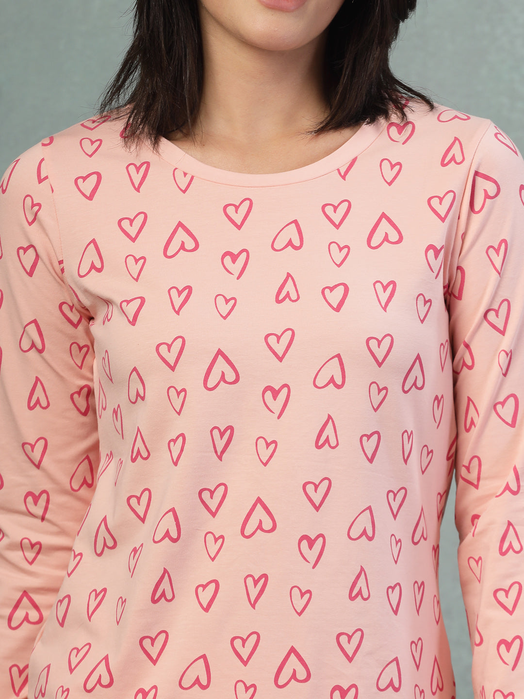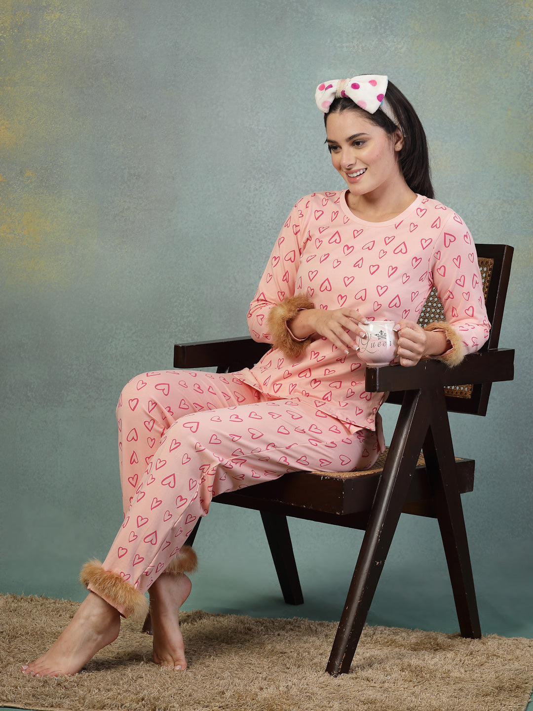 Fall in love with comfort all over again with our heart-print cotton co-ord set, designed to add a dose of whimsy to your everyday lounging. Trimmed with soft faux fur on the sleeves and hem, this cozy ensemble is where playful meets plush. Made from breathable cotton that’s gentle on the skin, this two-piece set is your go-to for all-season relaxation. It offers a gentle embrace for evenings and mornings, balancing softness with quiet elegance.