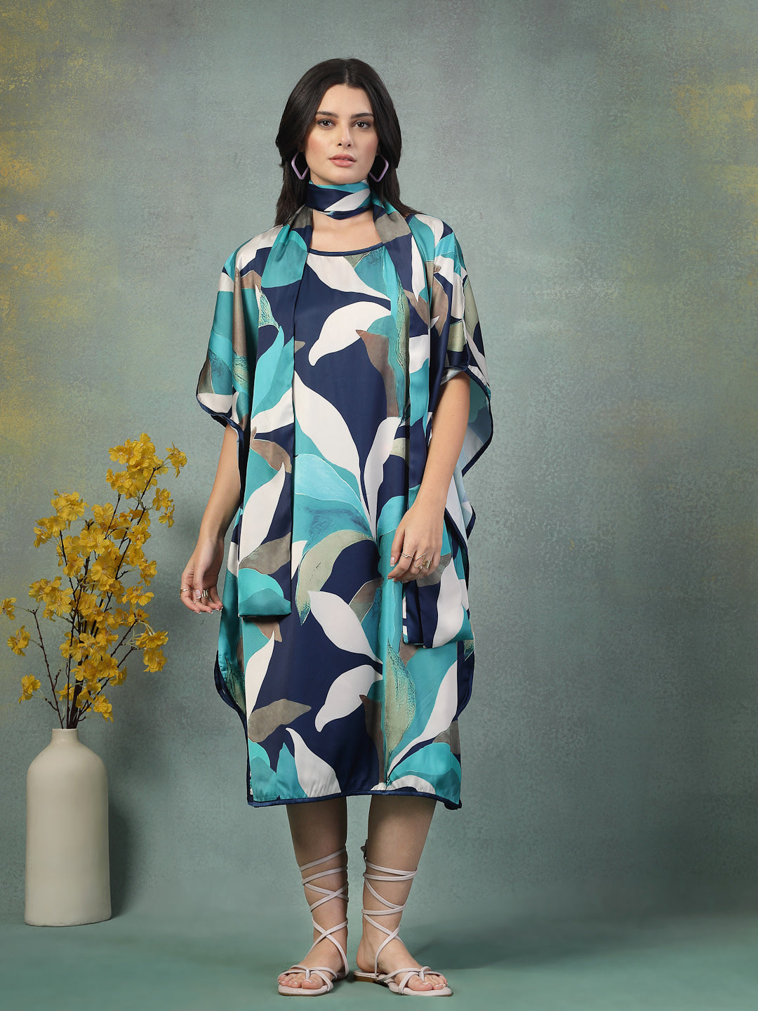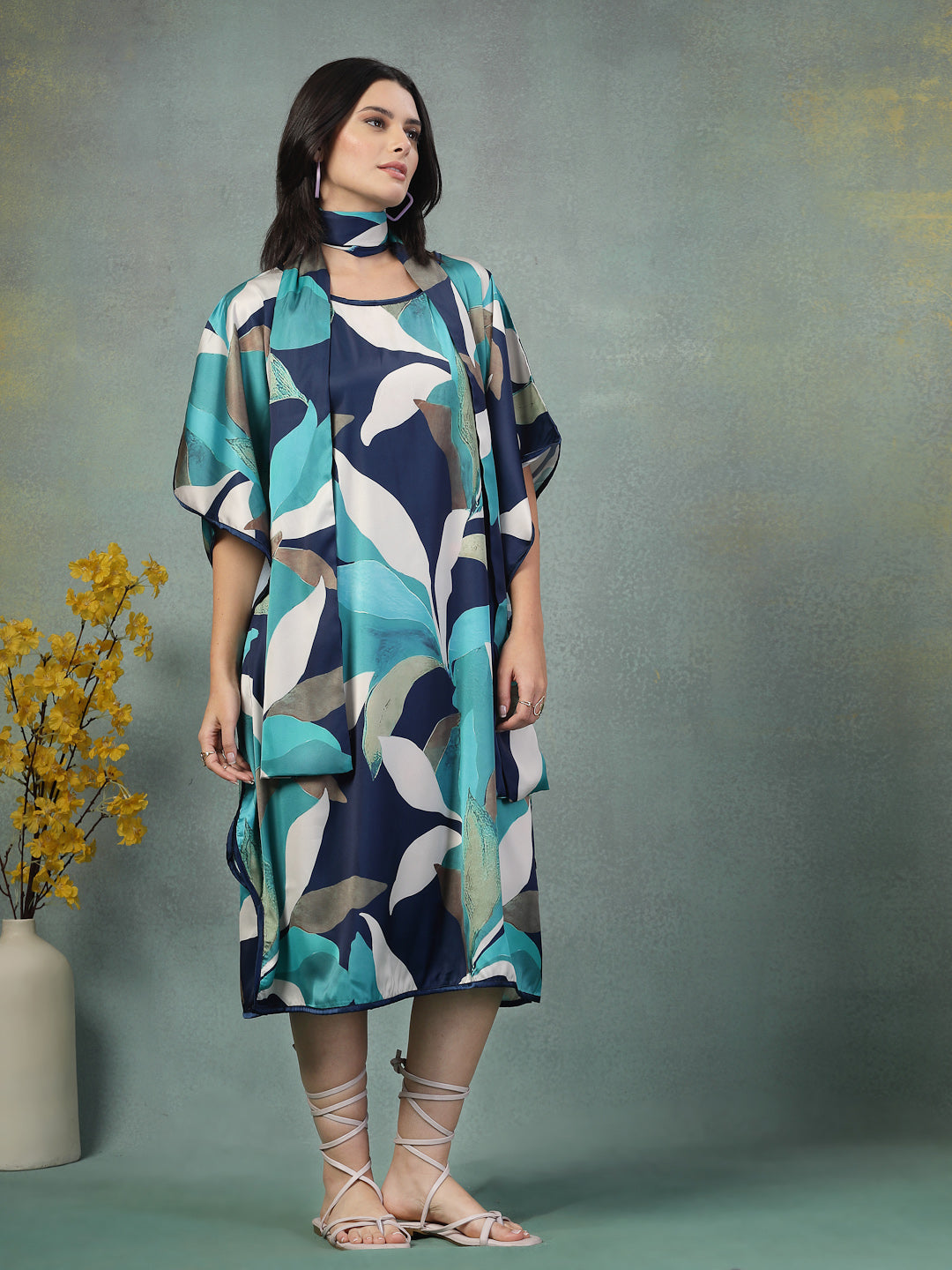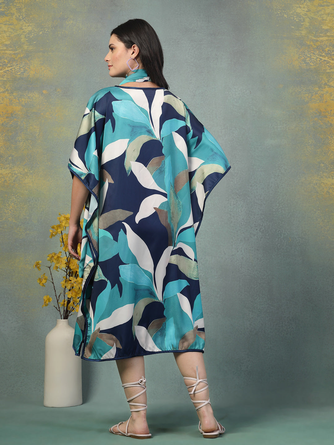 Flow through your day in effortless grace with this satin kaftan dress, designed for the woman who embraces ease without compromising on style. Crafted from soft satin lycra, the fabric offers a fluid drape that moves gently with every step. Whether you wear it loose or cinch the waist with the coordinating tie, it adapts beautifully to lounging, casual hosting, or even a day spent journaling in the sun. Softness meets style for everyday ease.