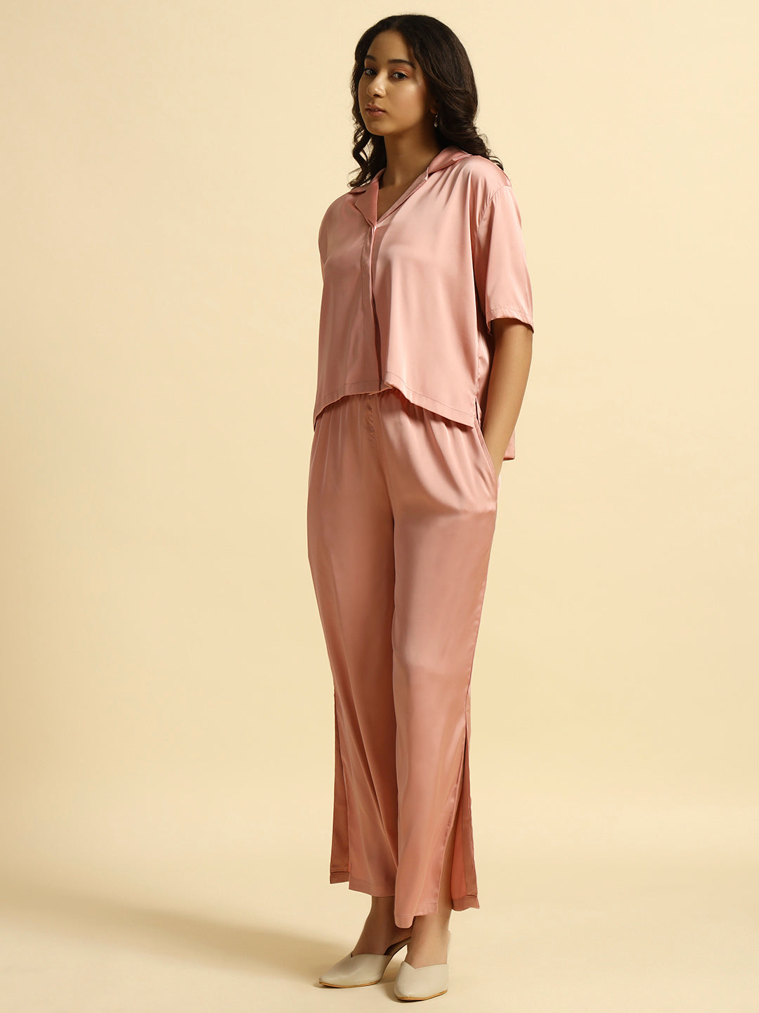 DESCRIPTION : Fur-Frill Satin Co-ord