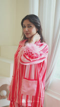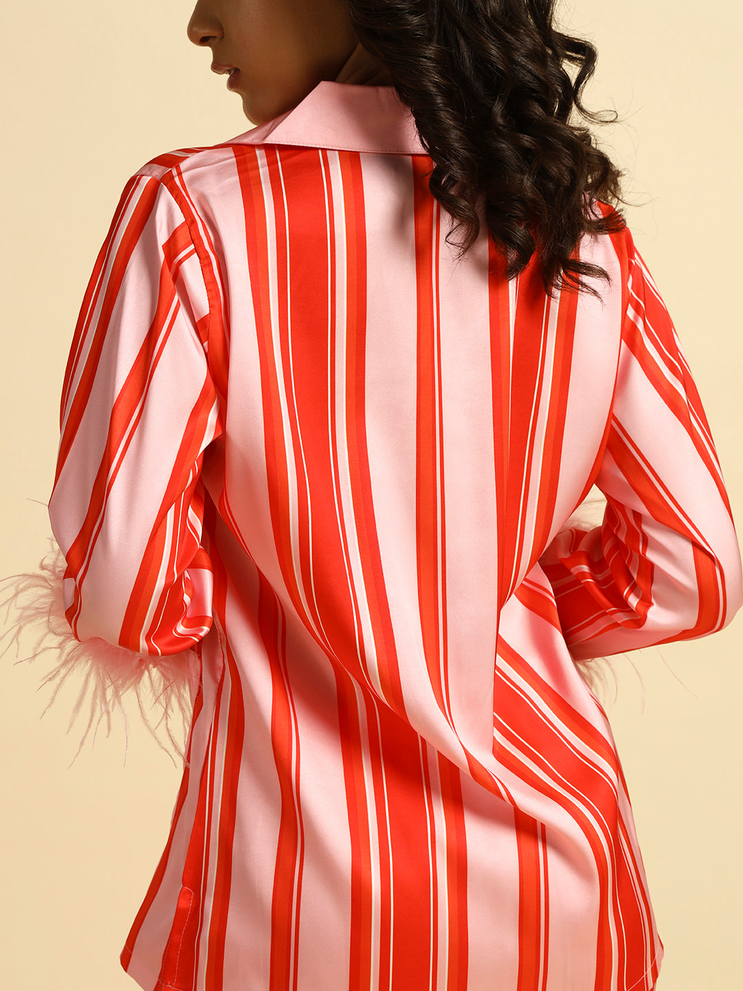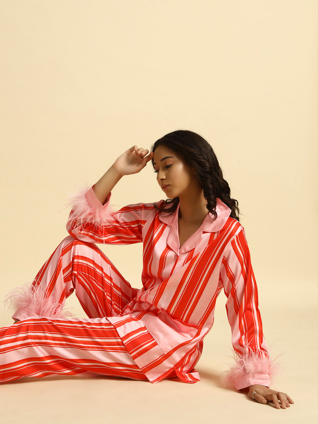 DESCRIPTION : Candy Stripe Set (pink and red striped with pink feathers)