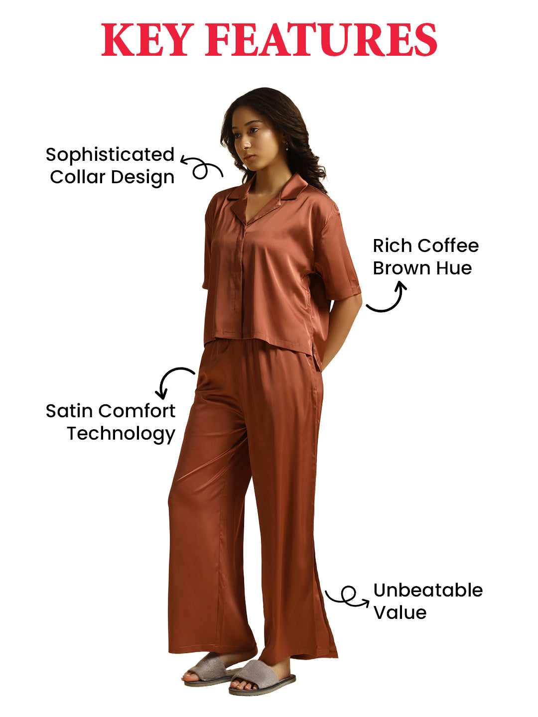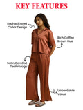 DESCRIPTION : Coffee Brown - Collared Satin Set