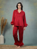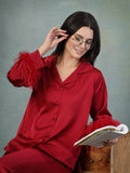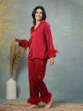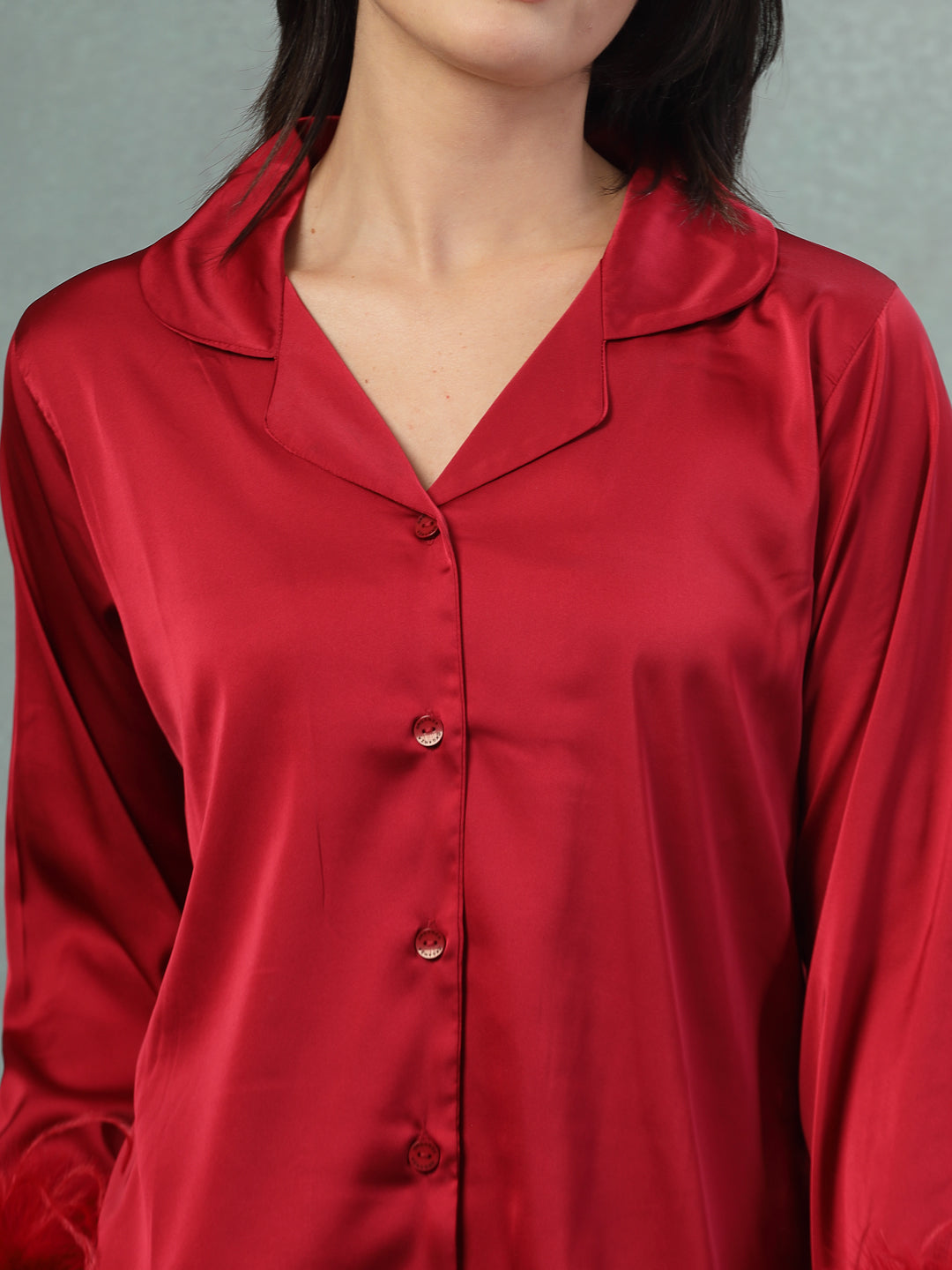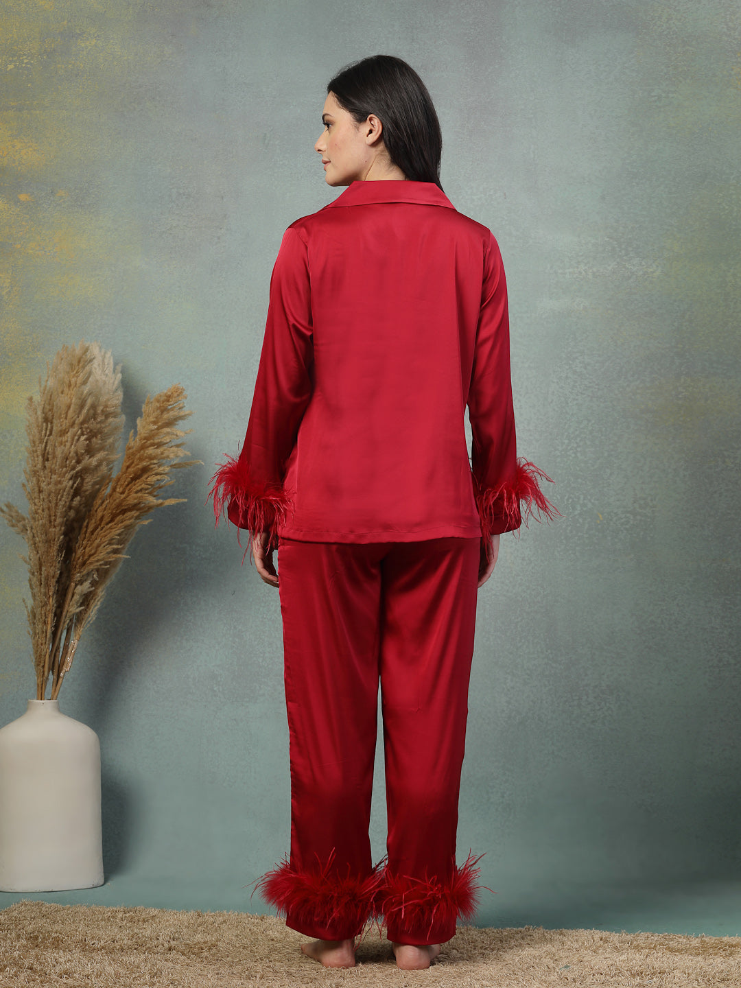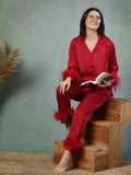 Crafted from ultra-soft satin lycra, it wraps you in silky comfort while the fur detailing adds just the right touch of glam. This all-weather piece transforms loungewear into a fashion-forward moment, perfect for evenings when you want to feel pampered yet polished. Whether you're hosting an at-home dinner or enjoying a solo pamper night, this set turns your living room into your runway. This set brings a refined ease to your downtime, with a subtle nod to style.