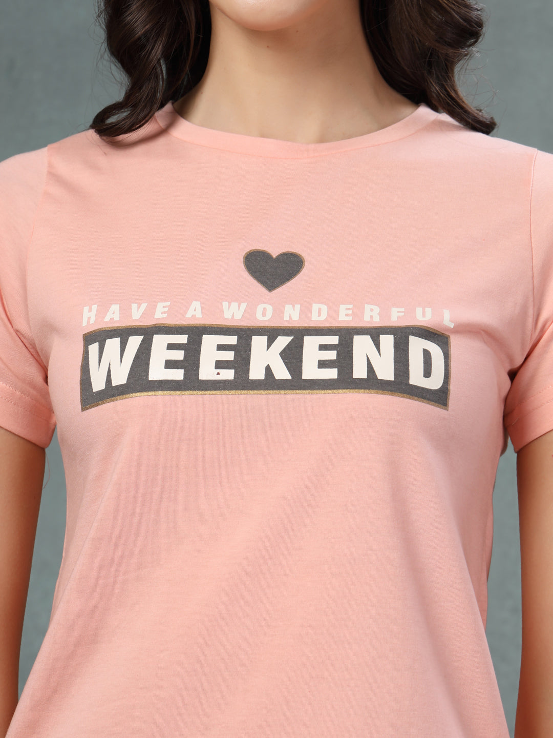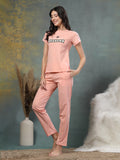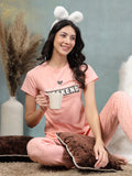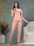 Ease into your weekend mood with this cotton-rich night suit set, designed to keep you comfy and cool through warm summer days and dreamy nights. With its soft breathable fabric and a fun printed message, it brings together everything you love about loungewear in one feel-good package. The top features a flattering fit that doesn’t cling, while the printed lowers offer just the right amount of ease for movement. Softness meets style for everyday ease.