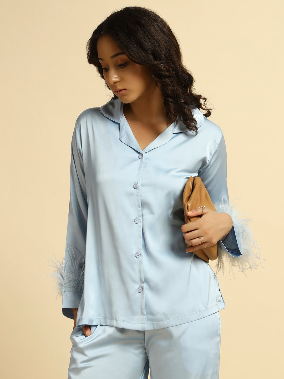 DESCRIPTION : Fur-Frill Satin Co-ord