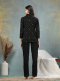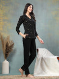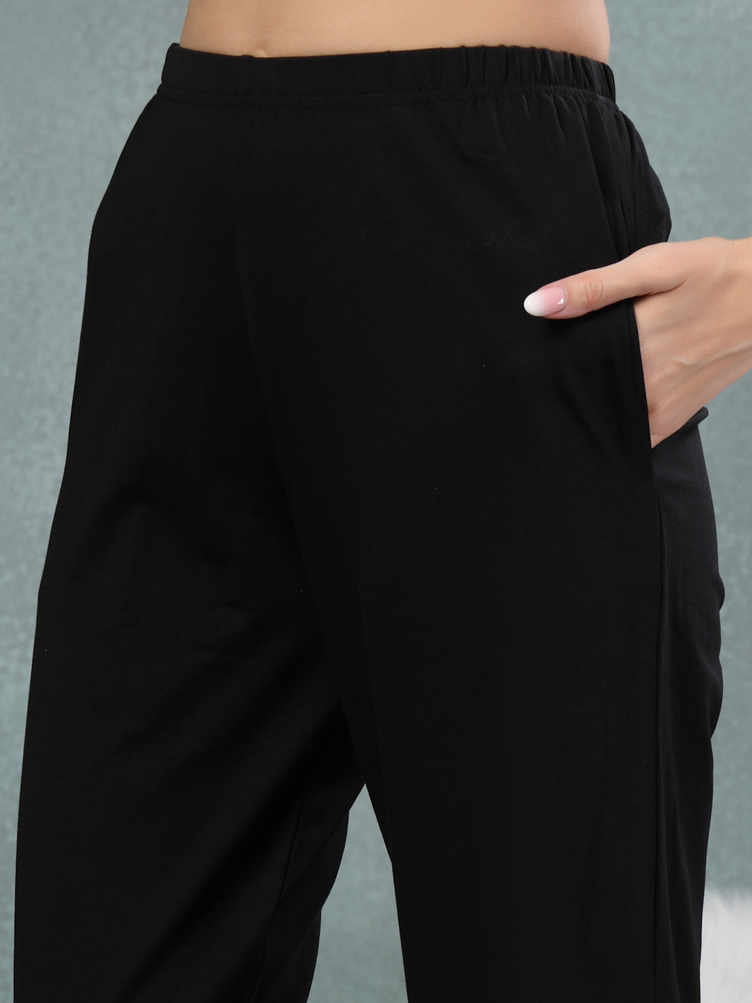 The smooth texture of the fabric feels gentle on the skin, making it perfect for both lounging and sleeping. Practical details like two pockets in the lower add convenience, while the high-quality finish ensures lasting wear. This set includes both the top and bottom, offering a complete look that blends comfort with understated charm. It offers a gentle embrace for evenings and mornings, balancing softness with quiet elegance. Gentle comfort meets subtle elegance.