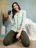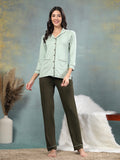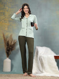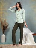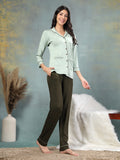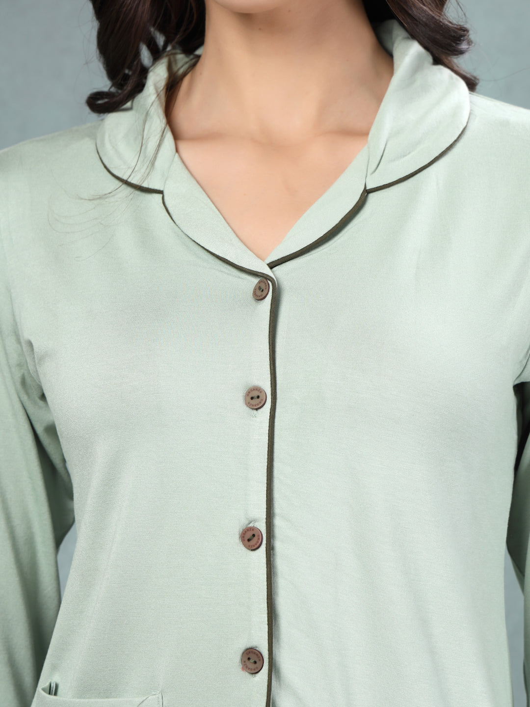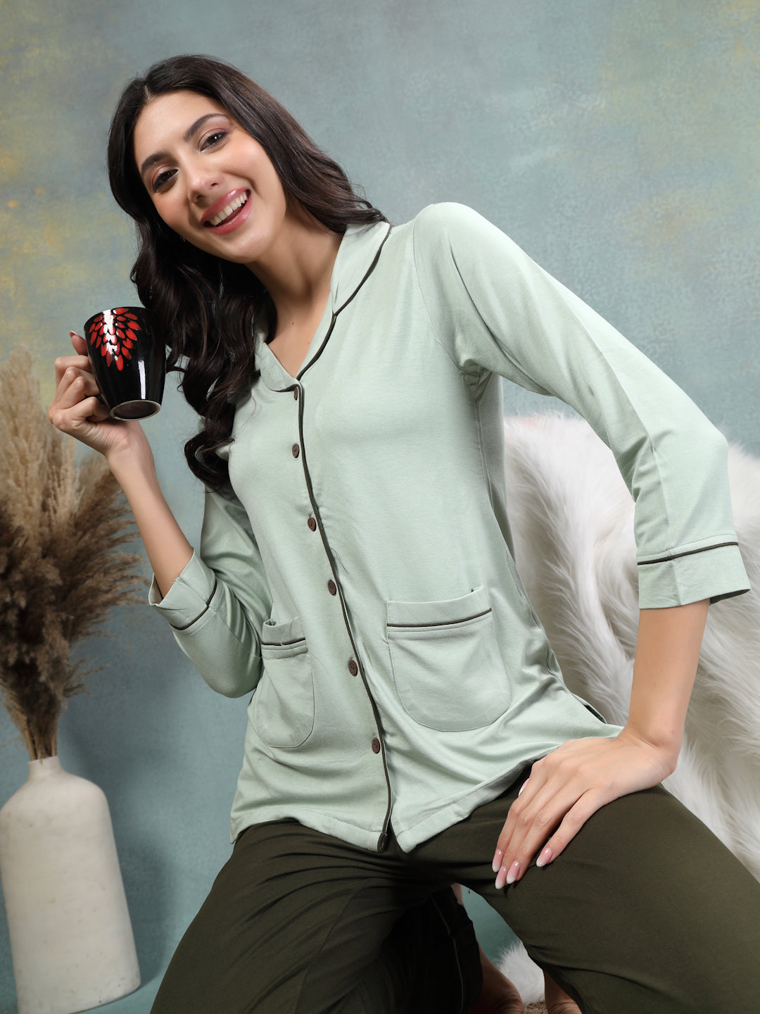 Crafted from luxuriously soft lycra cotton, it offers a cozy, stretchable fit that keeps you comfortable throughout the day or night. The top features a sophisticated design with a button-down front and contrast piping that highlights the edges for a polished look. It includes two upper patch pockets, ideal for stashing small essentials. This set brings a refined ease to your downtime, with a subtle nod to style. Softness meets style for everyday ease.