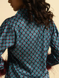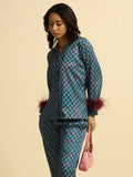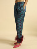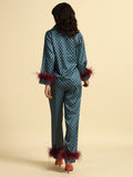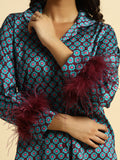 DESCRIPTION : Midnight Medallion Set (blue geometric pattern with burgundy feathers)