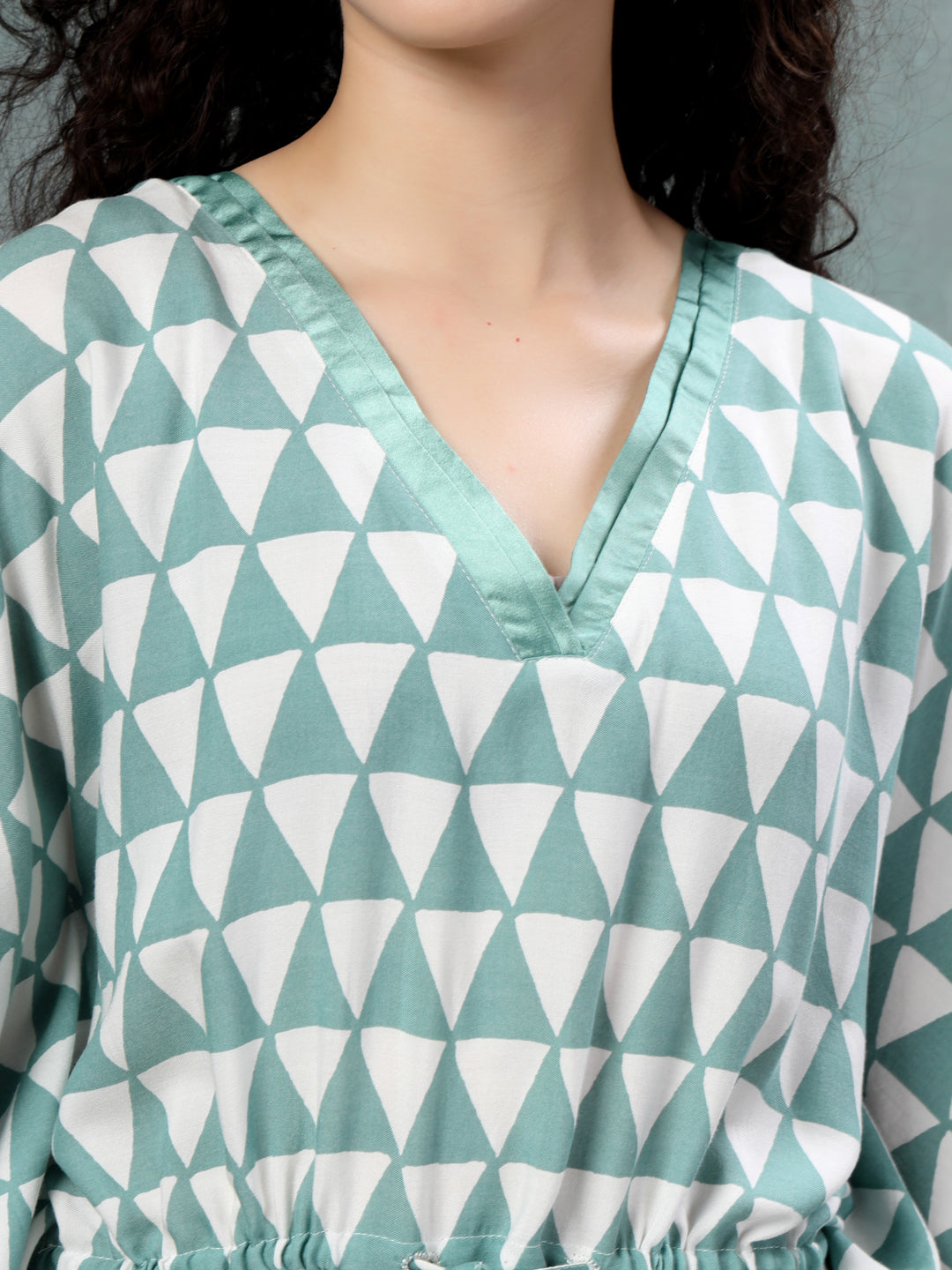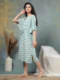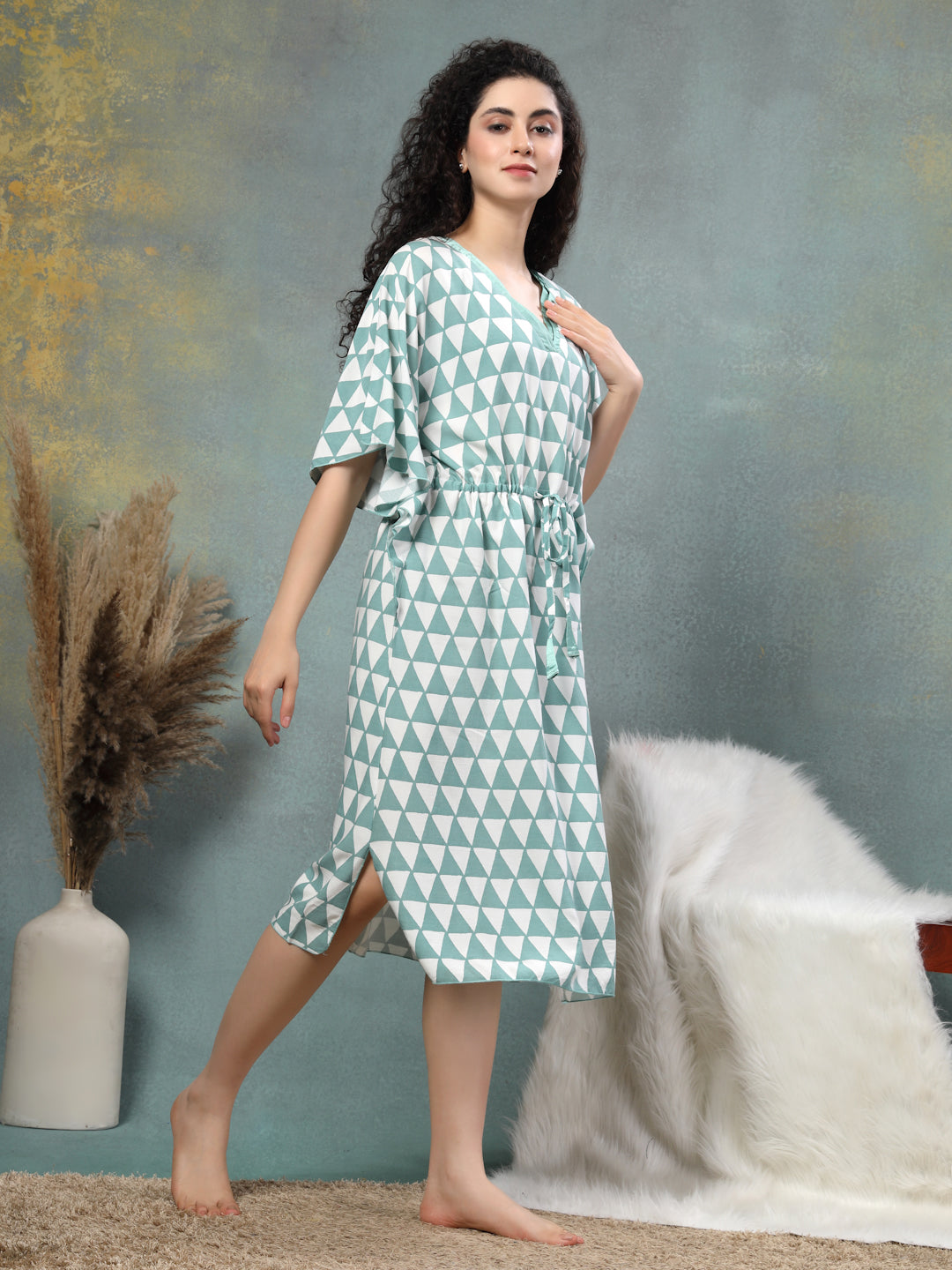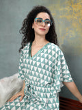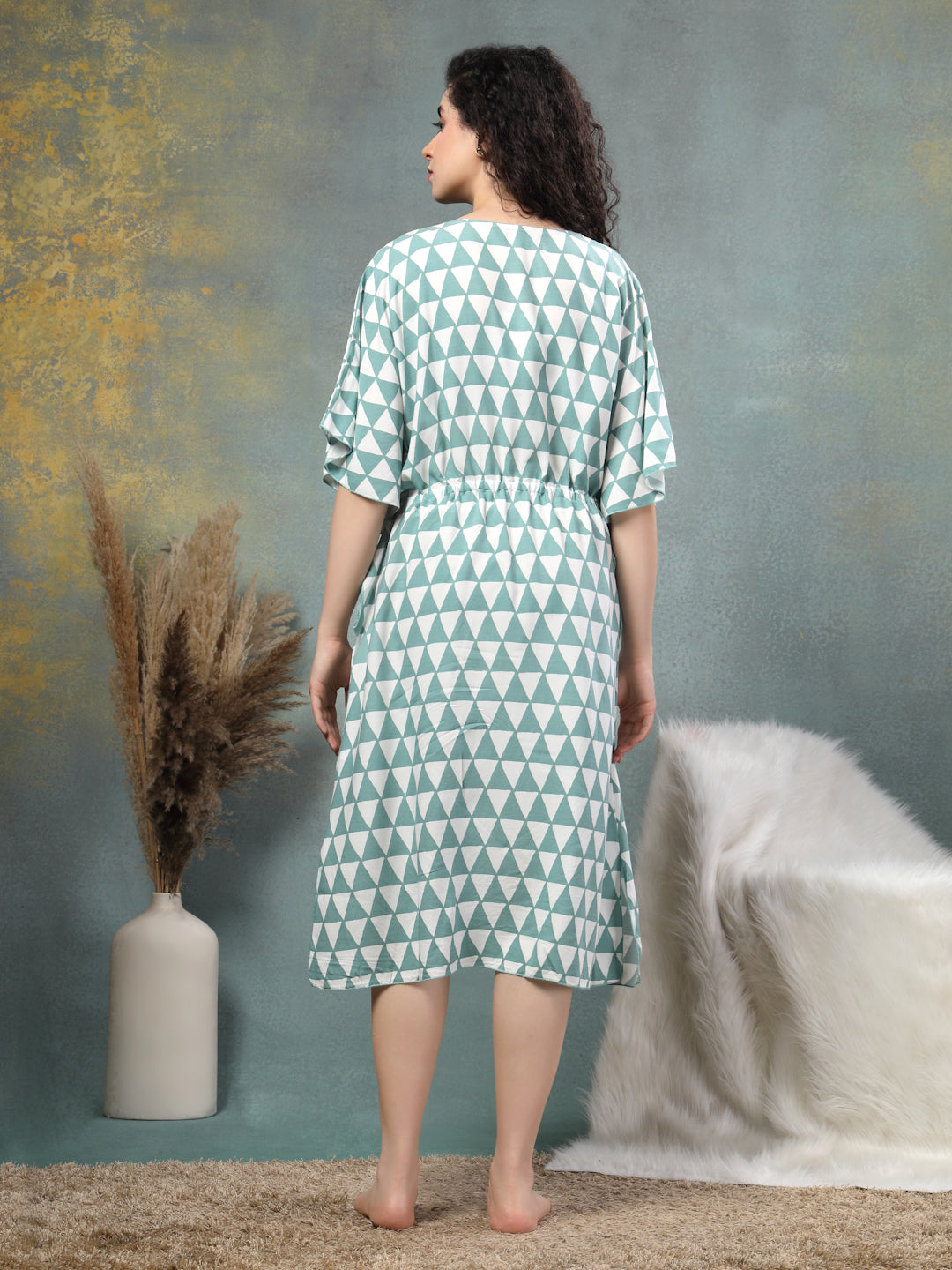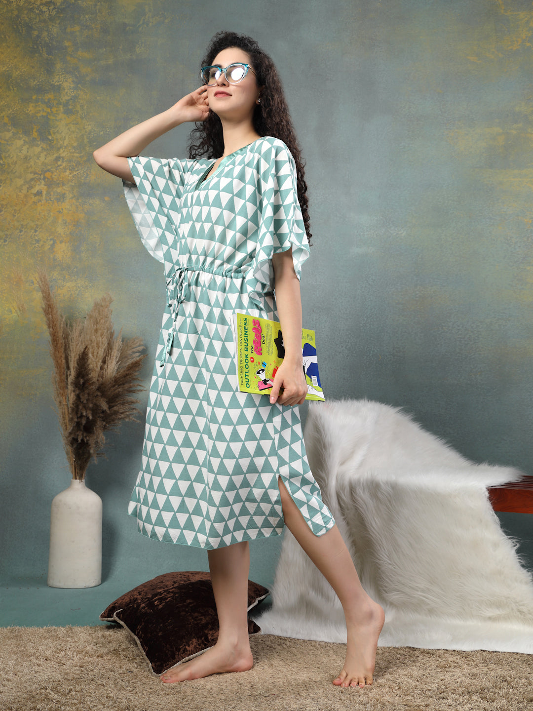 Designed in breathable viscose, this all-season staple drapes beautifully over your body, while the soft satin lapped V-neckline adds a polished touch. A satin drawstring at the waist lets you adjust the fit to your liking, making it perfect for lounging or casual outings. Whether you're relaxing at home or stepping out for a laid-back brunch, this kaftan transitions easily between loungewear and sleepwear. This set brings a refined ease to your downtime, with a subtle nod to style.