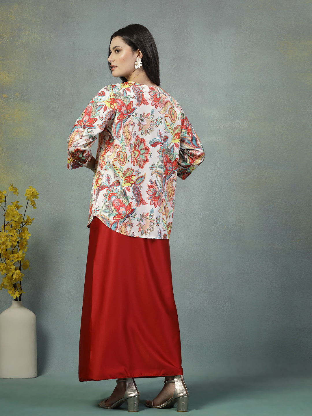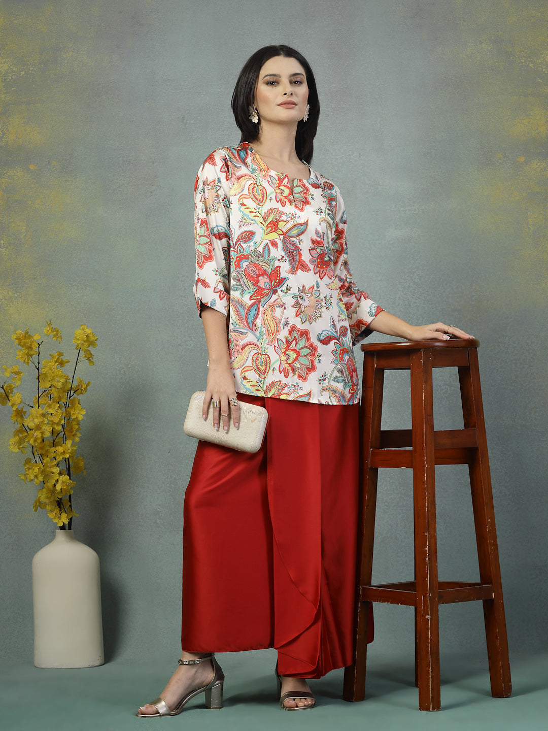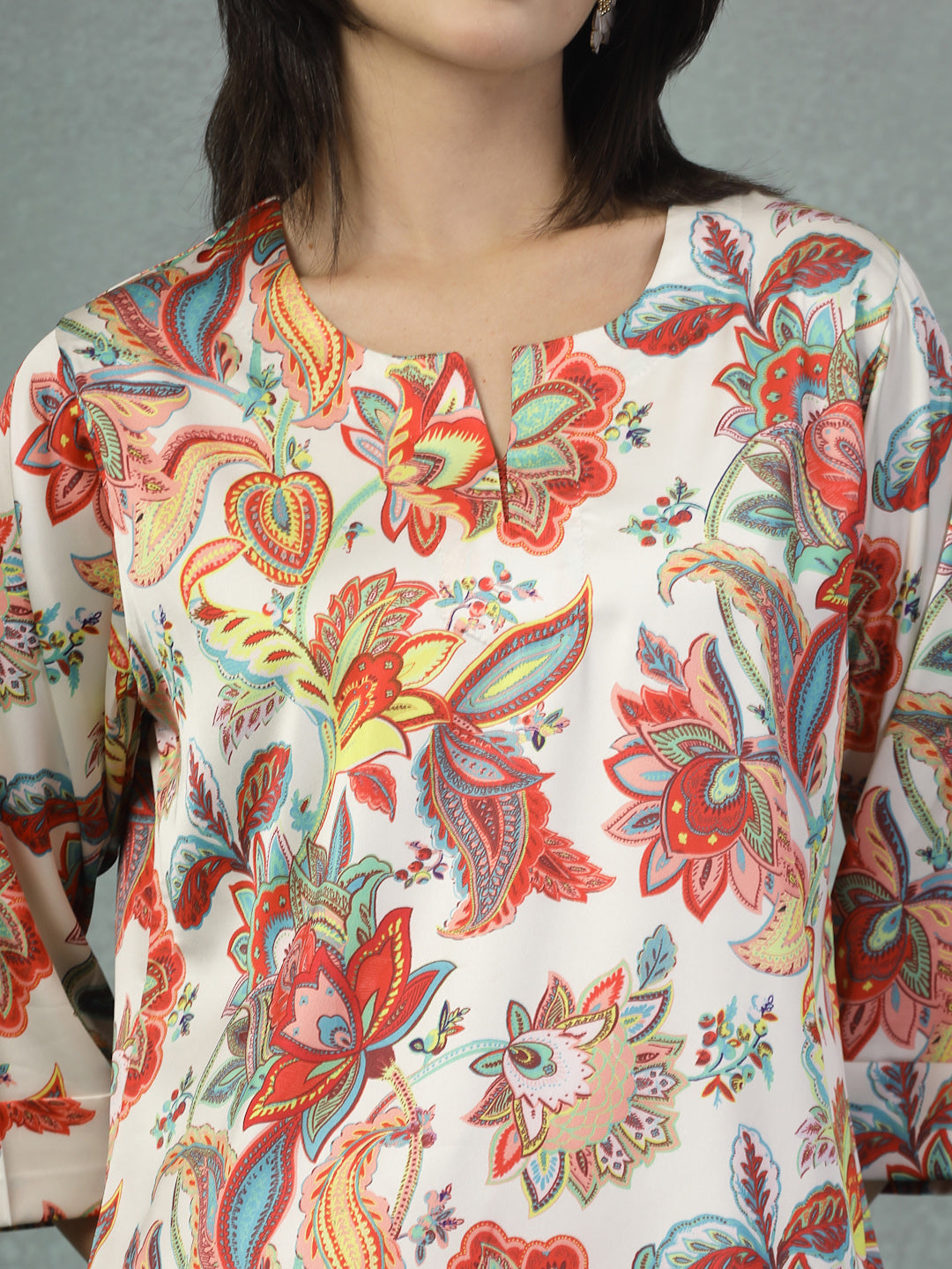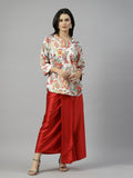 This 2-piece set features a short kurta with intricate designs, paired with a pre-stitched dhoti that creates a flowing, flattering silhouette. The lustrous satin fabric glides against the skin, offering a lightweight, breathable feel that’s ideal for both loungewear and sleepwear. A comfortable round neckline and subtle gathers at the waist add a unique charm, making this set perfect for relaxed evenings, festive gatherings, or intimate dinners at home. Softness meets style for everyday ease.