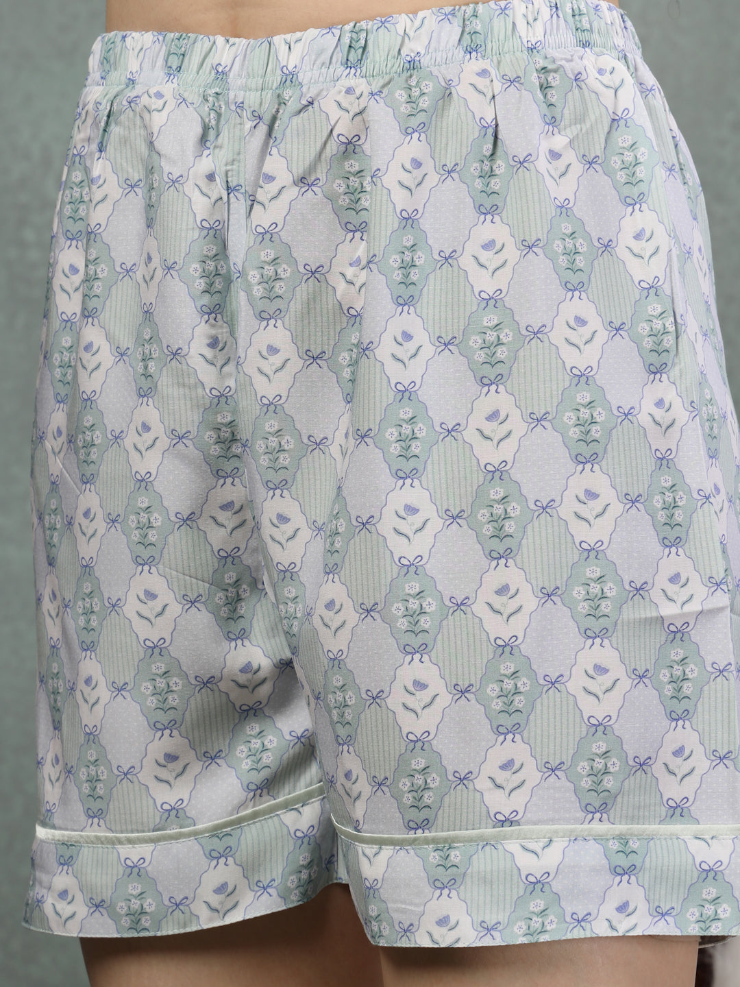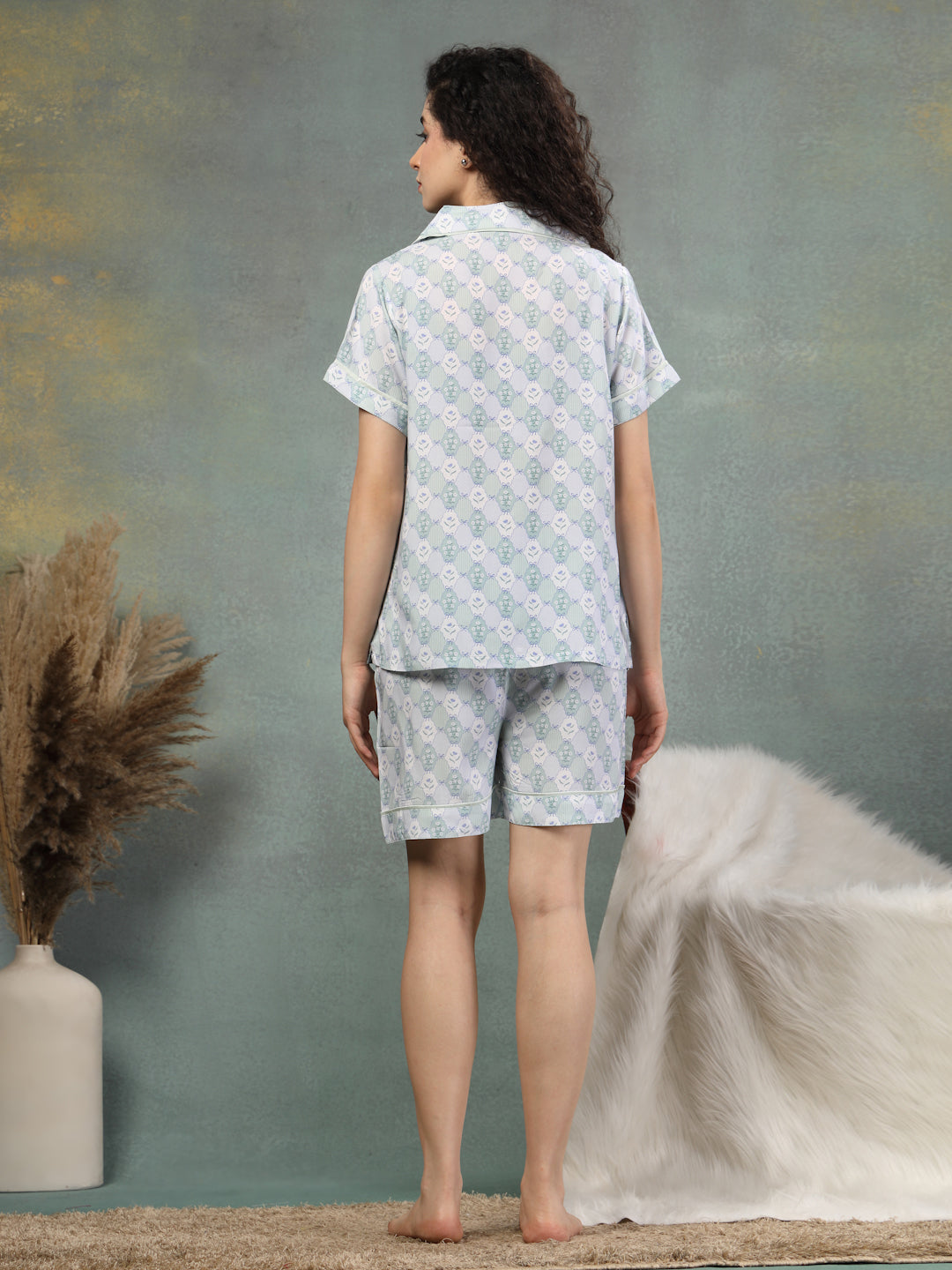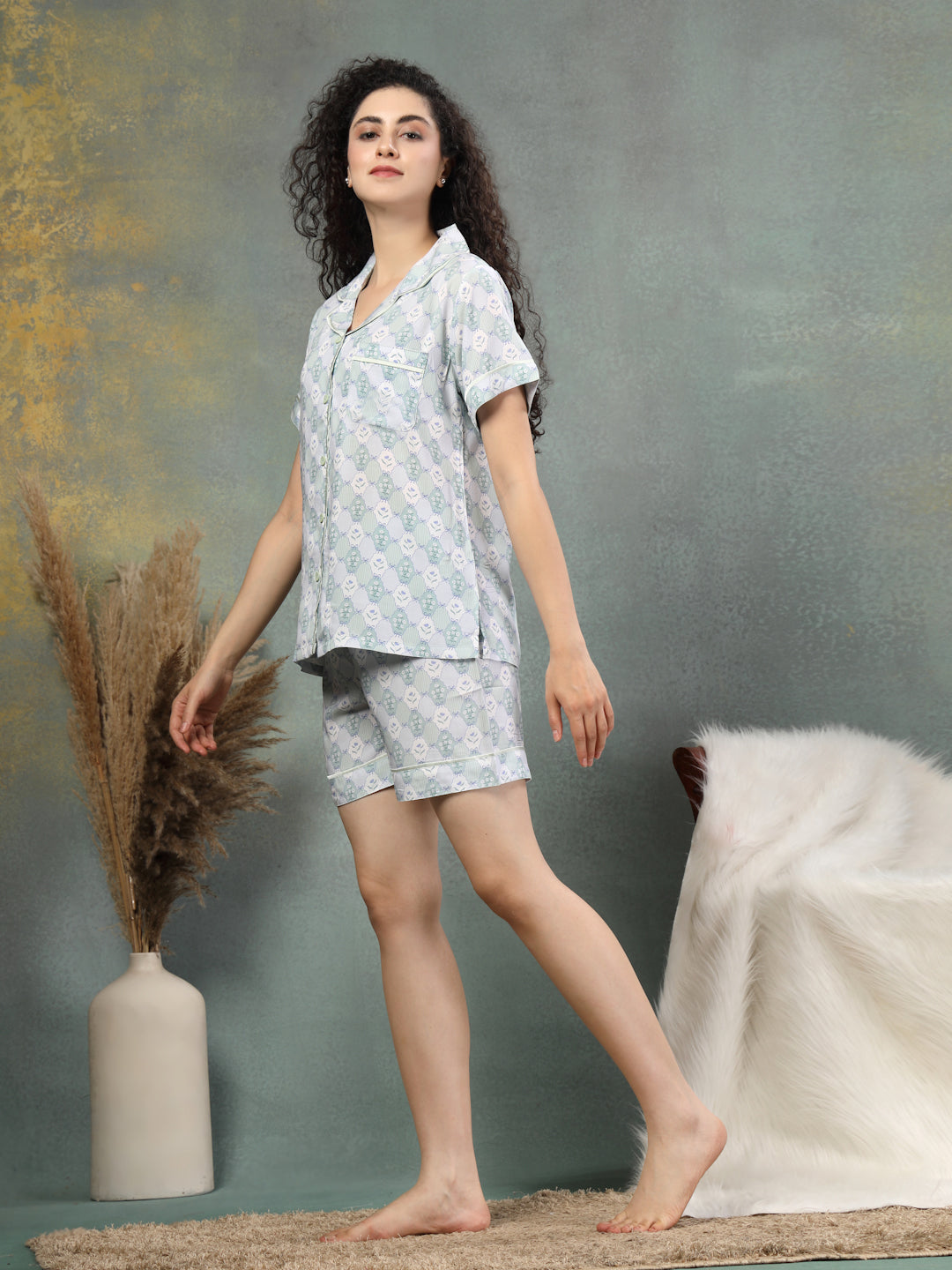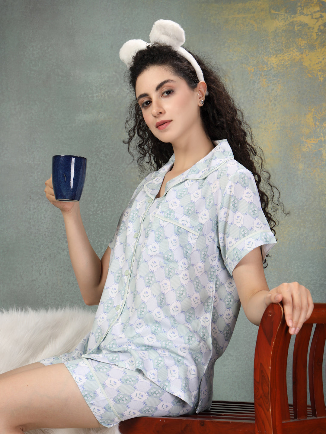 Crafted from buttery-soft viscose and brushed with a delicate pastel print, this ensemble is sunshine in fabric form. The relaxed fit lets you move like you own the weekend, while the matching piping and single chest pocket bring that tailored touch to your downtime. When your vibe says “cozy” but your look says “adorably put together,” this short set delivers the best of both worlds. This set brings a refined ease to your downtime, with a subtle nod to style.