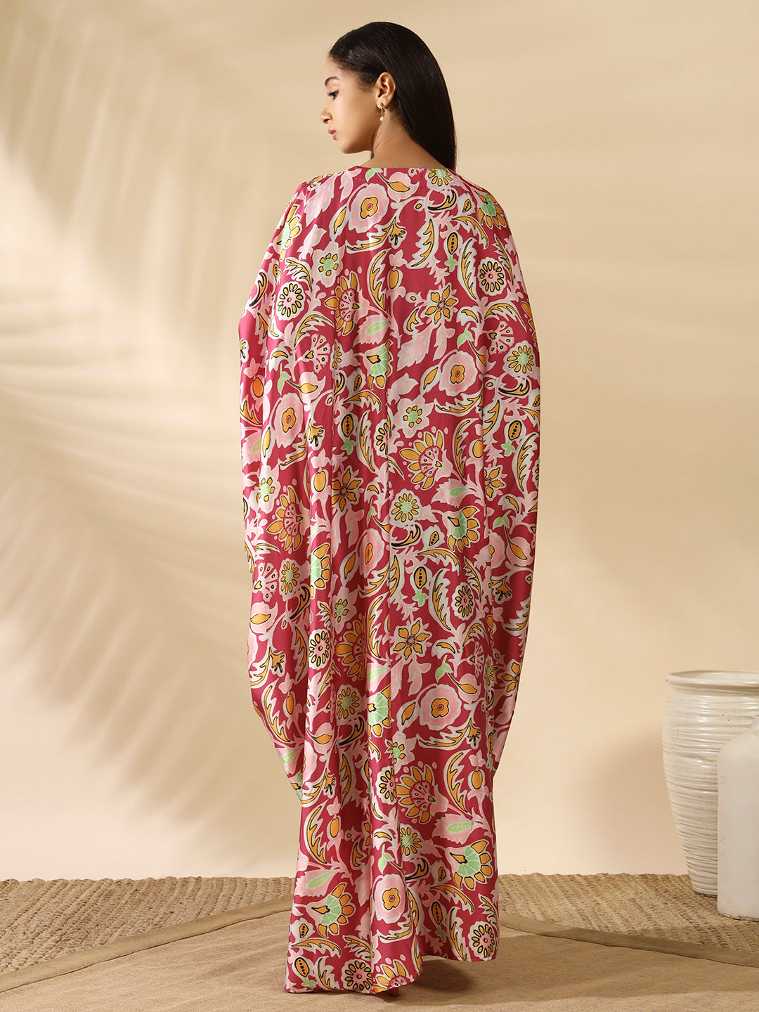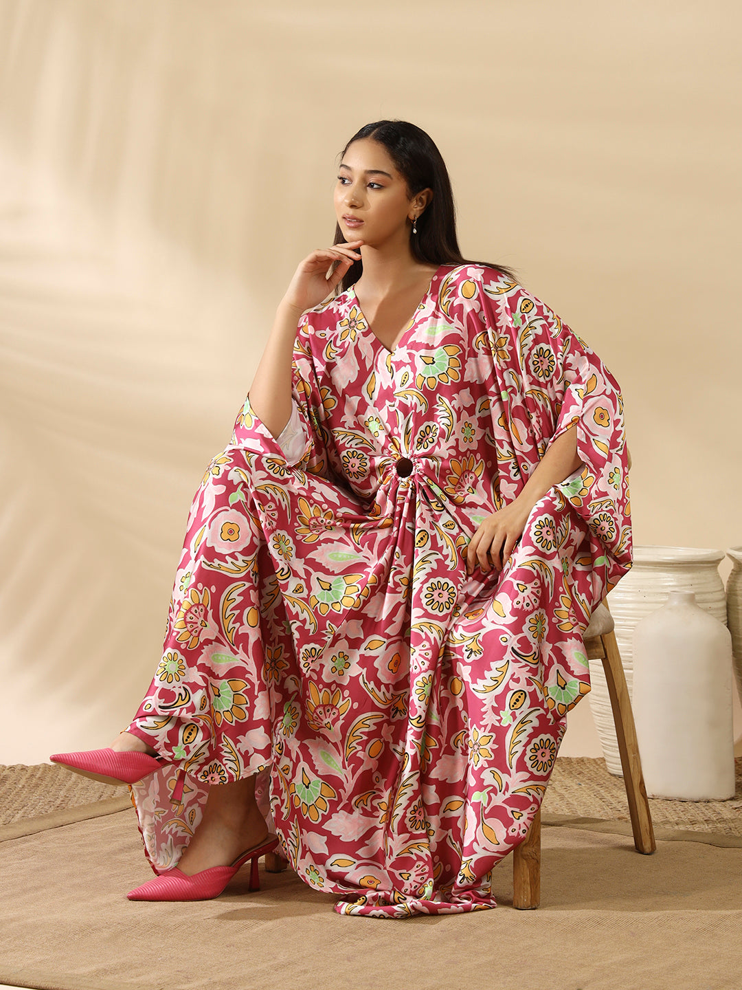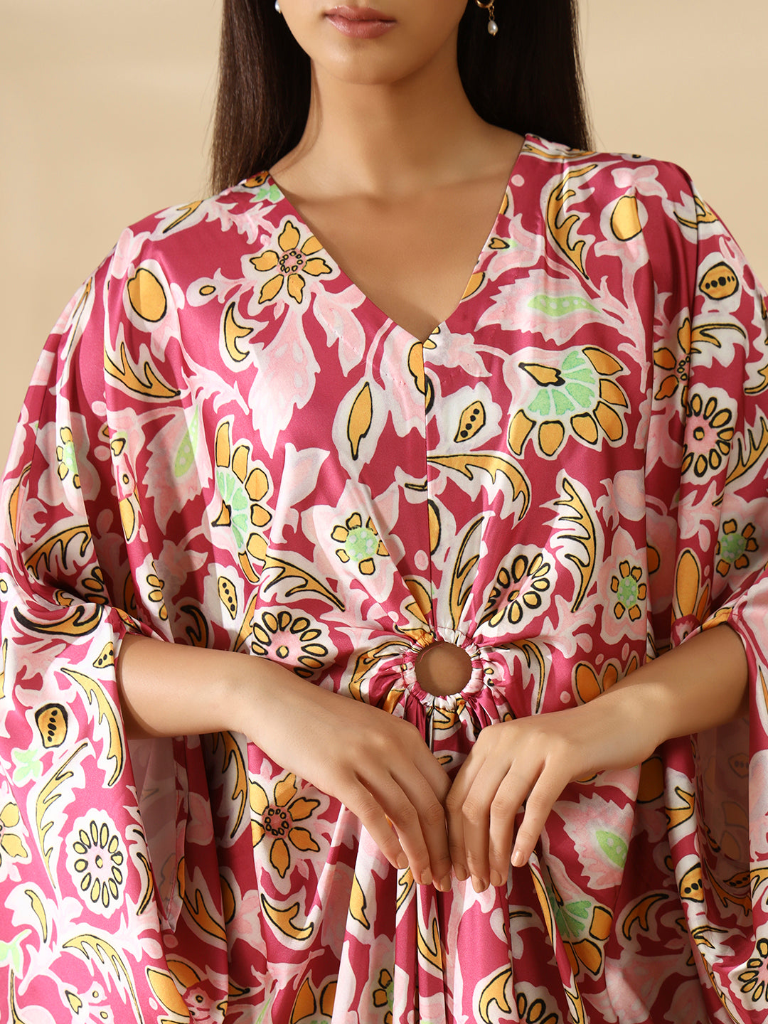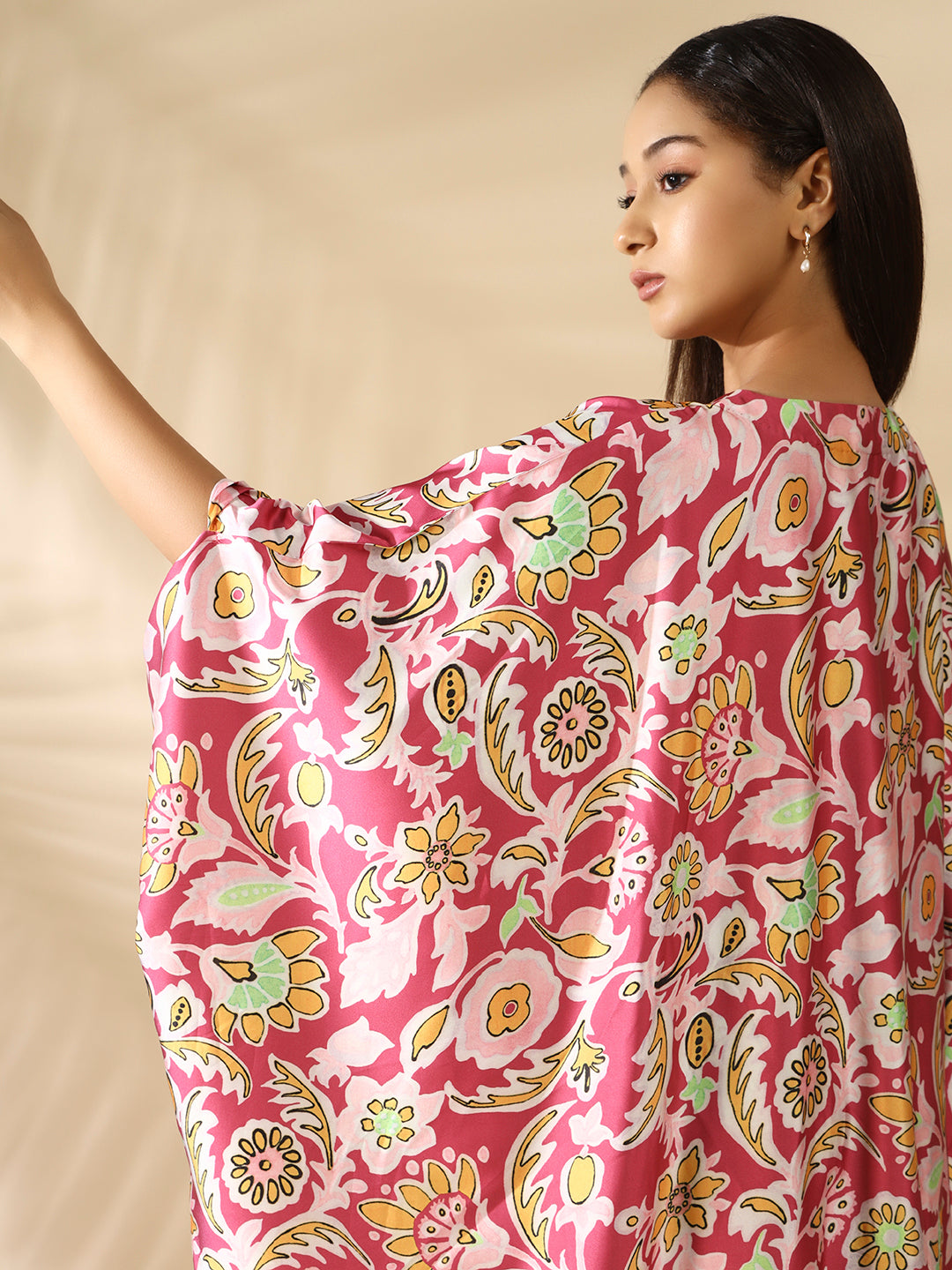 Some outfits whisper comfort while making a quiet statement, and this satin kaftan dress does exactly that. Made from smooth, skin-loving satin, this dress offers a lightweight touch that feels barely there, with enough drape to create movement and flow. The structured print panels give it a tailored visual rhythm while the wide sleeves and adjustable waist keep it relaxed and wearable. The result is a harmonious blend of comfort and design, made for savoring life's simple moments.