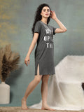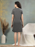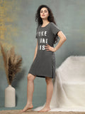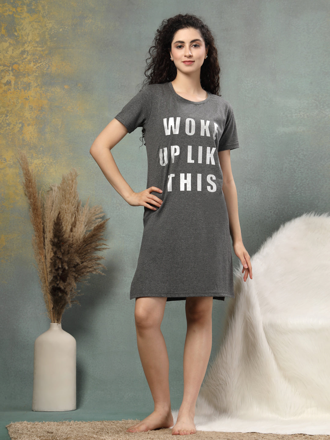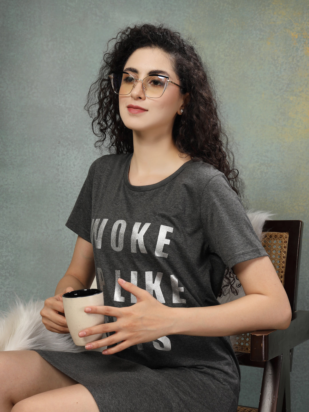 This night shirt offers a stylish take on loungewear with its comfortable cotton lycra fabric and flattering relaxed fit. The stretchable material provides extra comfort for both lounging and sleeping, while the simple silhouette keeps it effortlessly chic. Ideal for all-season use, it brings both ease and edge to your downtime wardrobe. This set brings a refined ease to your downtime, with a subtle nod to style. Softness meets style for everyday ease.