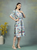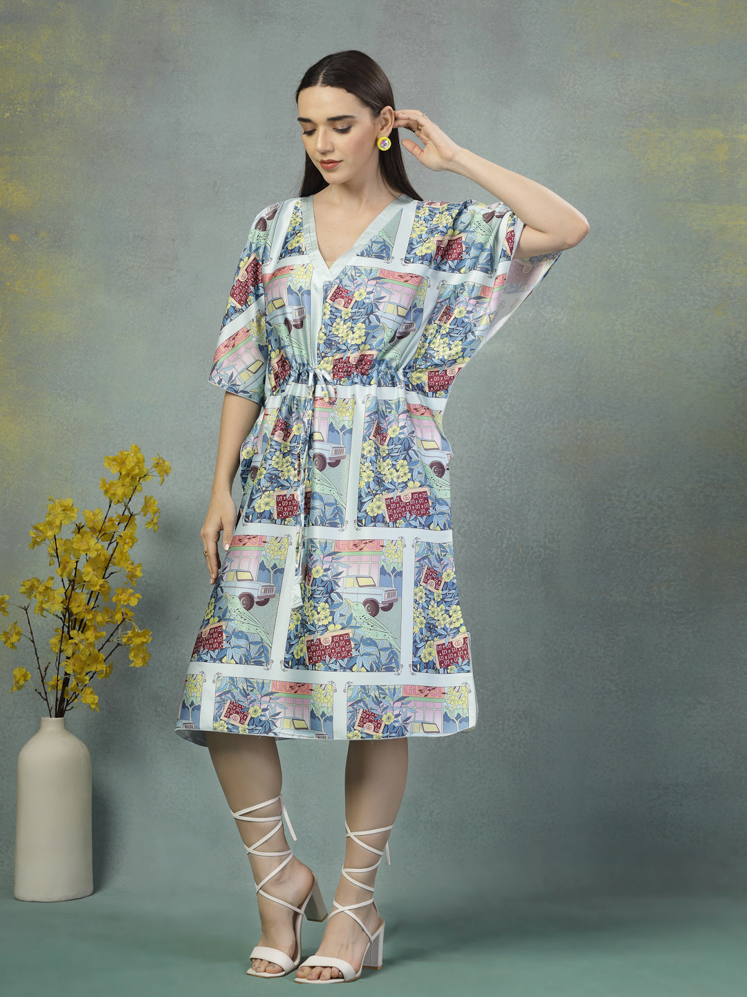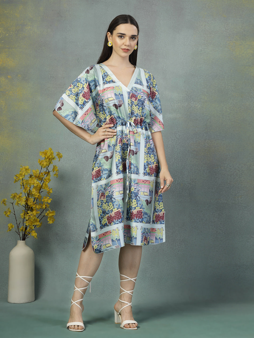Some outfits whisper comfort while making a quiet statement, and this satin kaftan dress does exactly that. Made from smooth, skin-loving satin, this dress offers a lightweight touch that feels barely there, with enough drape to create movement and flow. The structured print panels give it a tailored visual rhythm while the wide sleeves and adjustable waist keep it relaxed and wearable. The result is a harmonious blend of comfort and design, made for savoring life's simple moments.