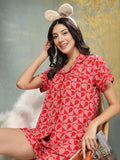 Crafted for warm-weather lounging and dreamy sleep, it features a relaxed short-sleeve shirt with matching piping details and a comfy pair of shorts that make downtime look effortlessly cute. The fabric is buttery soft with a gentle sheen, keeping you cool and comfortable through even the warmest days. A single chest pocket adds a touch of function without weighing you down, while the overall silhouette flatters with freedom of movement in mind.