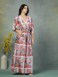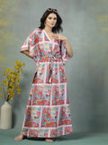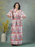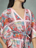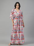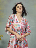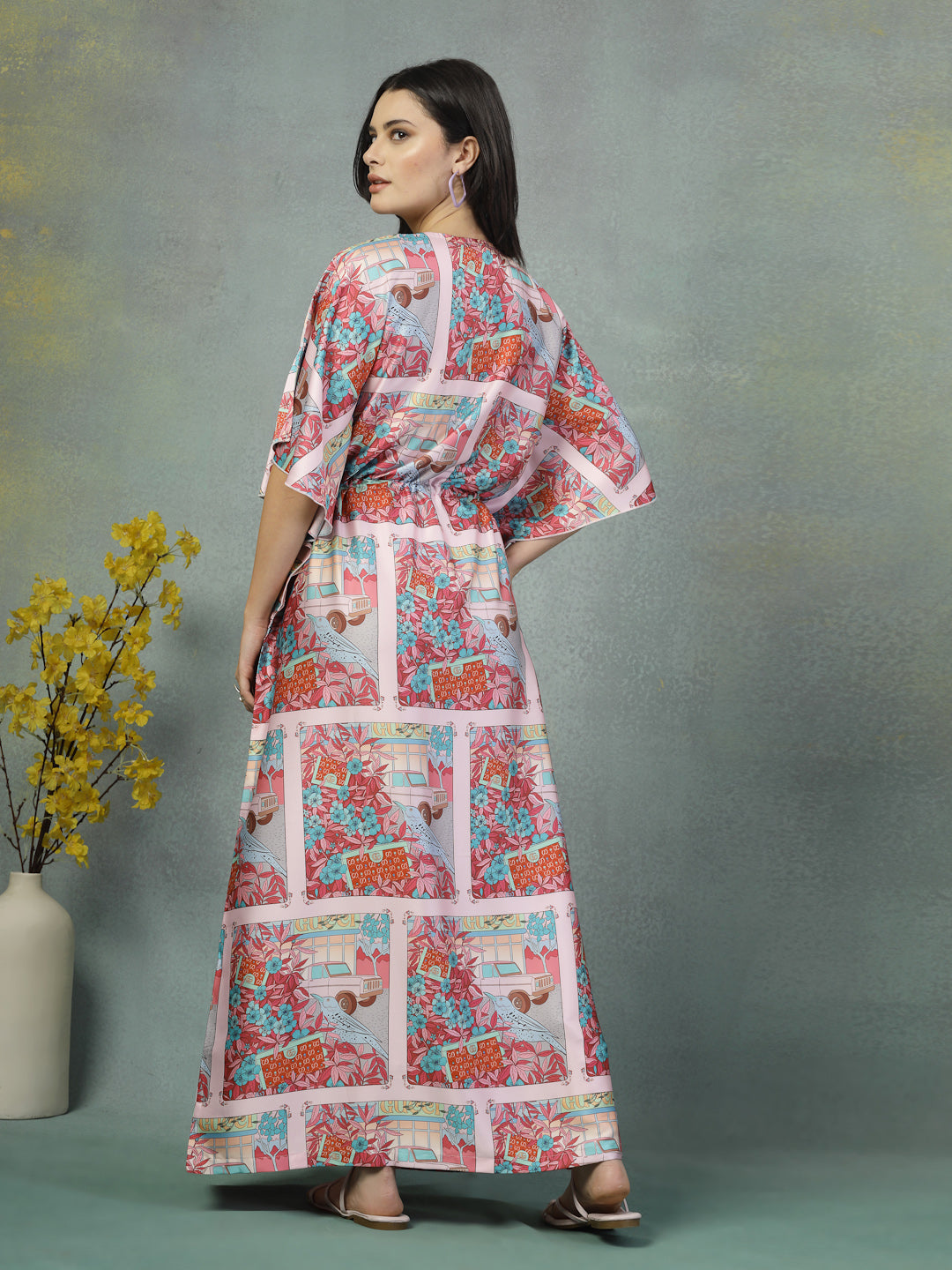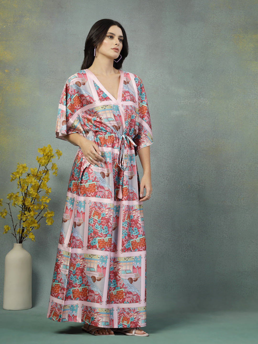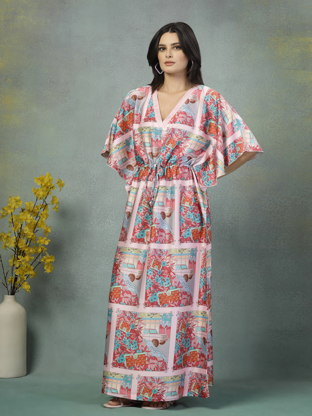 Bring a playful spirit to your everyday ease with this satin printed kaftan dress, crafted to offer flow, comfort, and a joyful burst of color. The lightweight satin fabric is smooth on the skin and offers a subtle sheen that catches the light with every movement. A drawstring tie at the waist lets you adjust the fit to your liking, whether you want to wear it loose and easy or gently cinched for a more defined shape.
