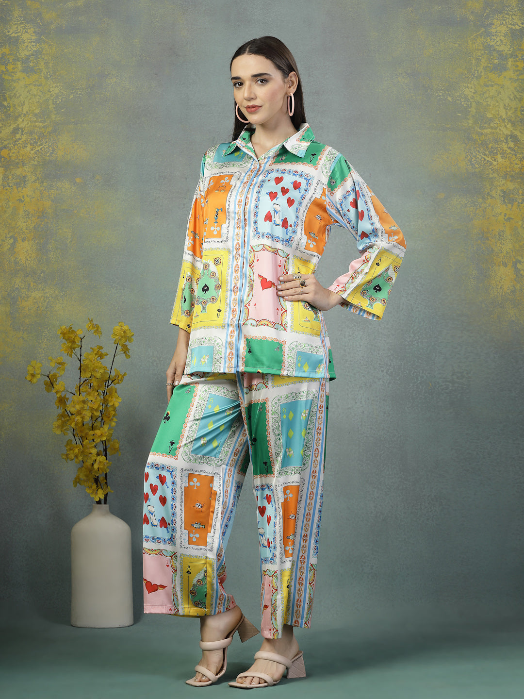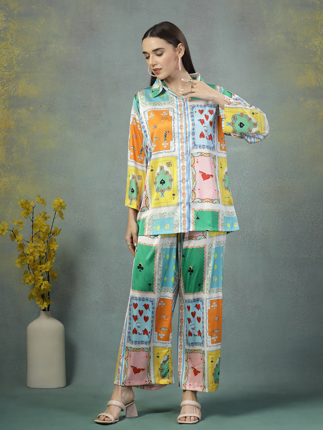 Slip into something smoother with our satin coord set, a luxurious take on everyday loungewear. Crafted with a lycra base and adorned with striking designer prints, this set elevates your downtime with an editorial flair.