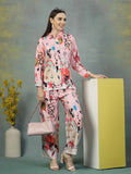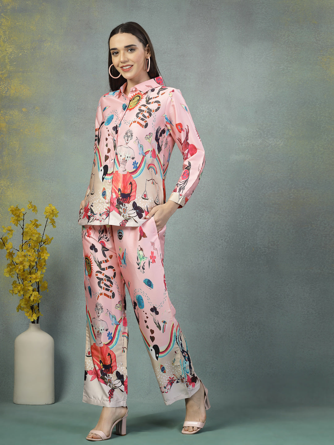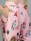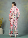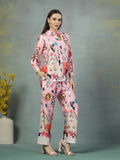 Elevate your loungewear game with our satin lycra coord set, designed for year-round sophistication. This set includes a super soft top, adorned with a designer print, and pants featuring two deep side pockets for practicality.